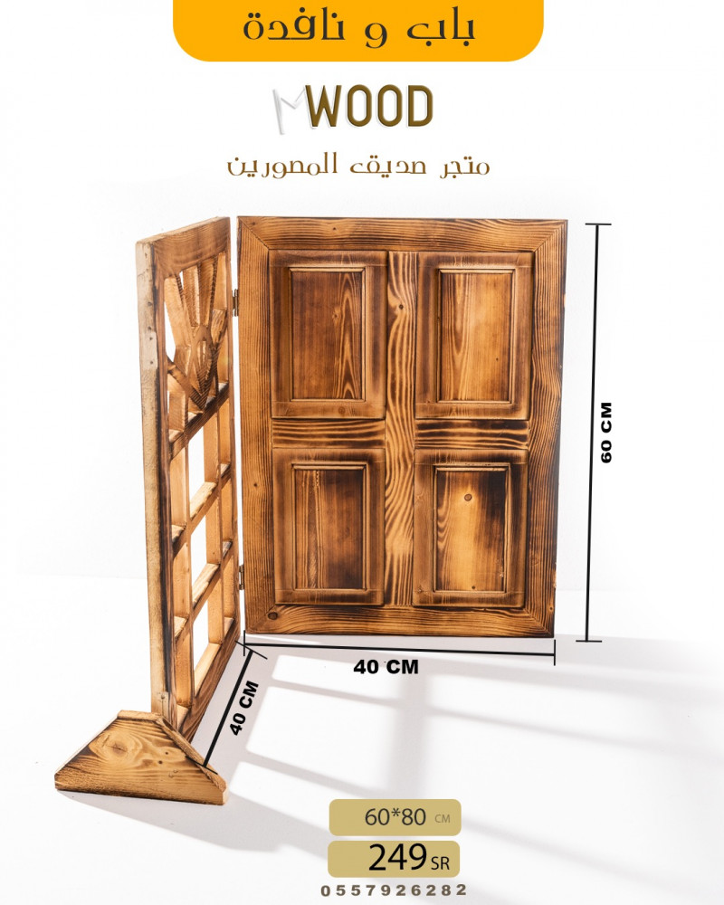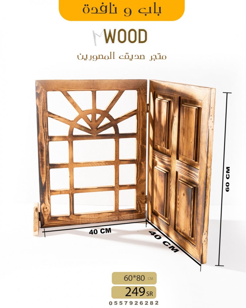 جدارية خشبية بطابع الباب القديم او النافدة مدمجة بنافذة وصانعة ظلال