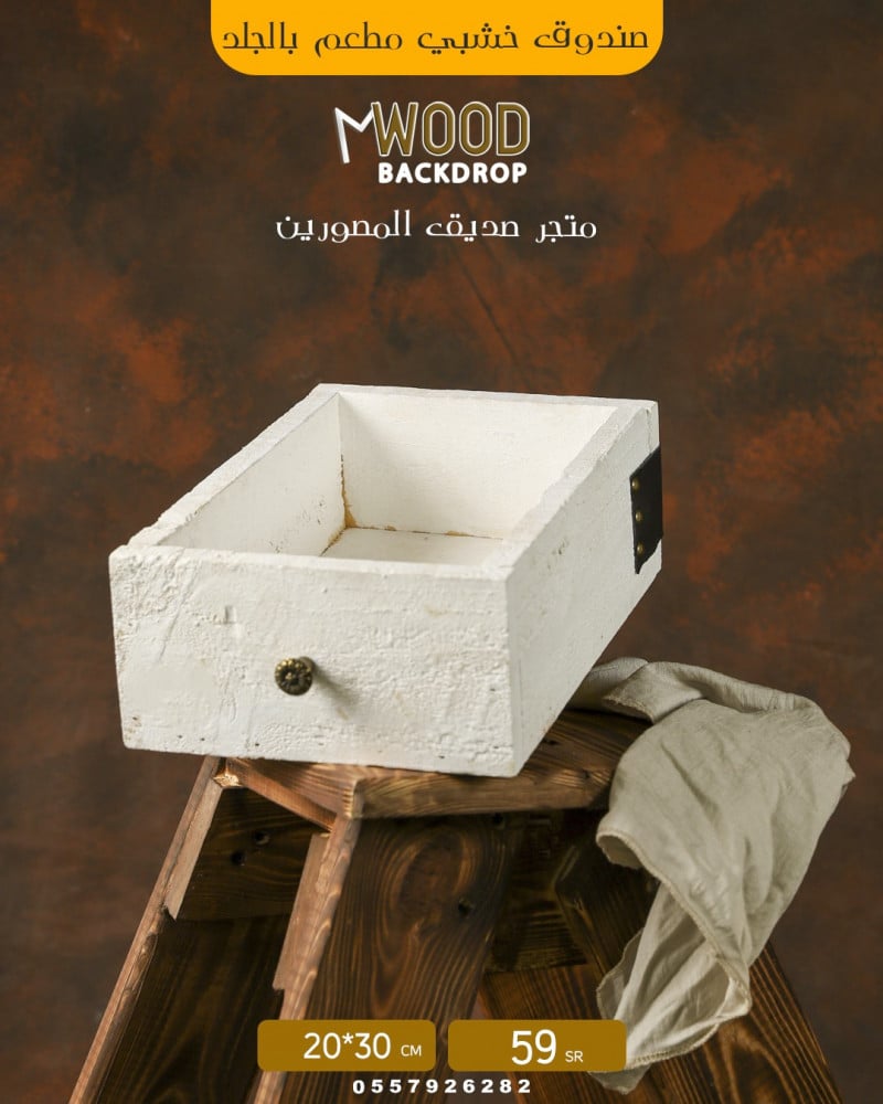صندوق خشبي ابيض مطعم بالجلد والمسكة